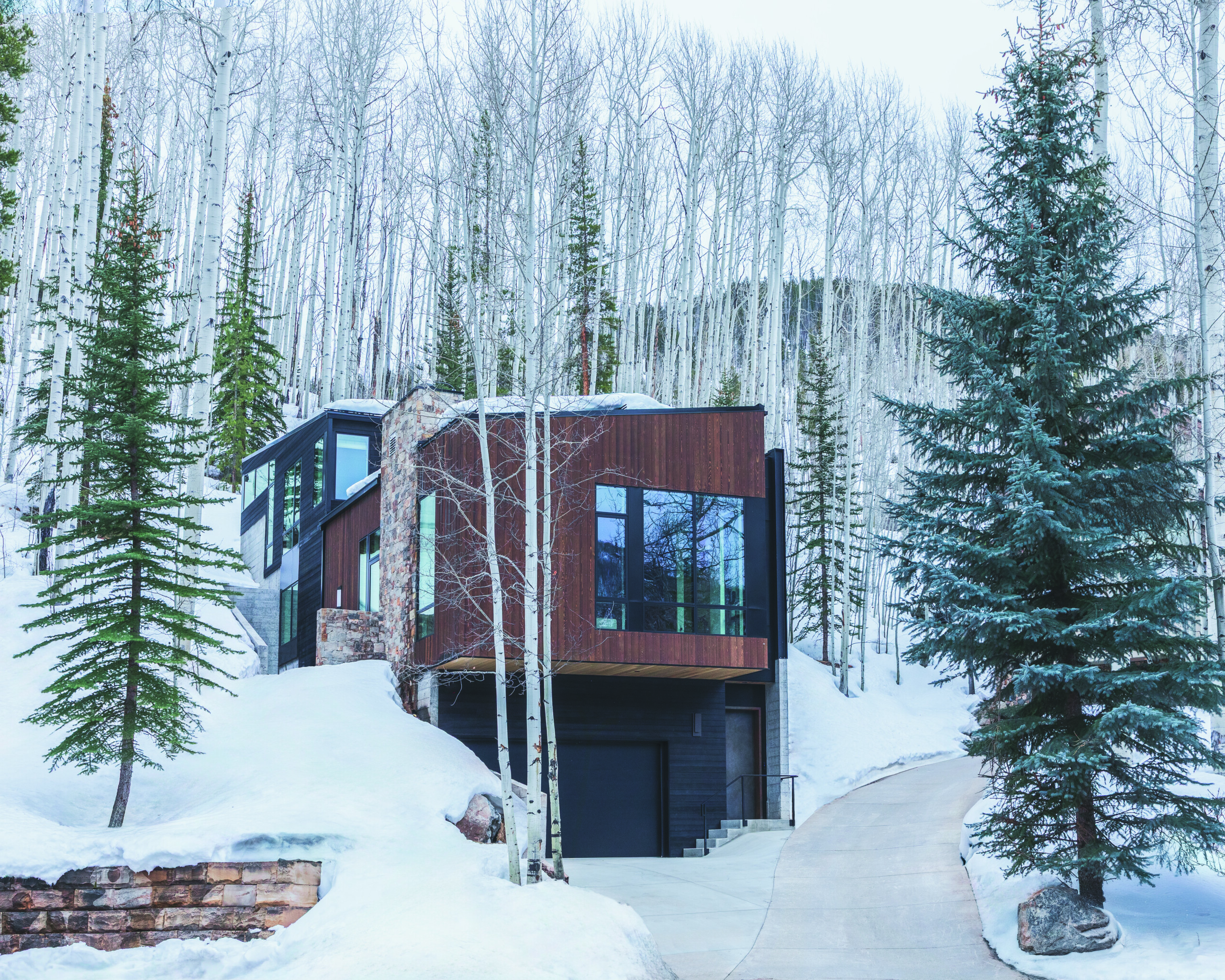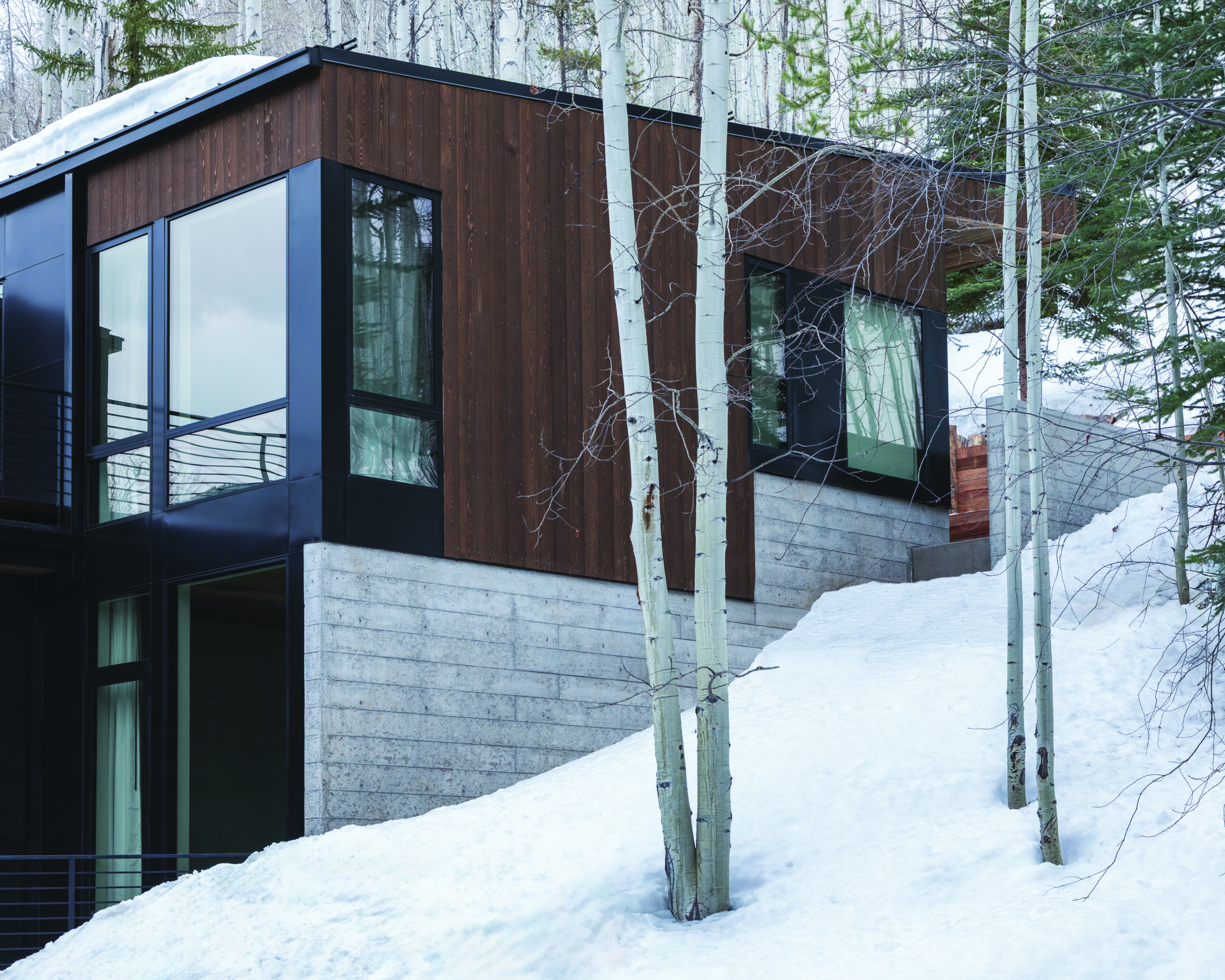 TUCKER JOHNSON ARCHITECTS and VINTAGE WOODS take on a challenging site to create a distinctive modern mountain beauty.