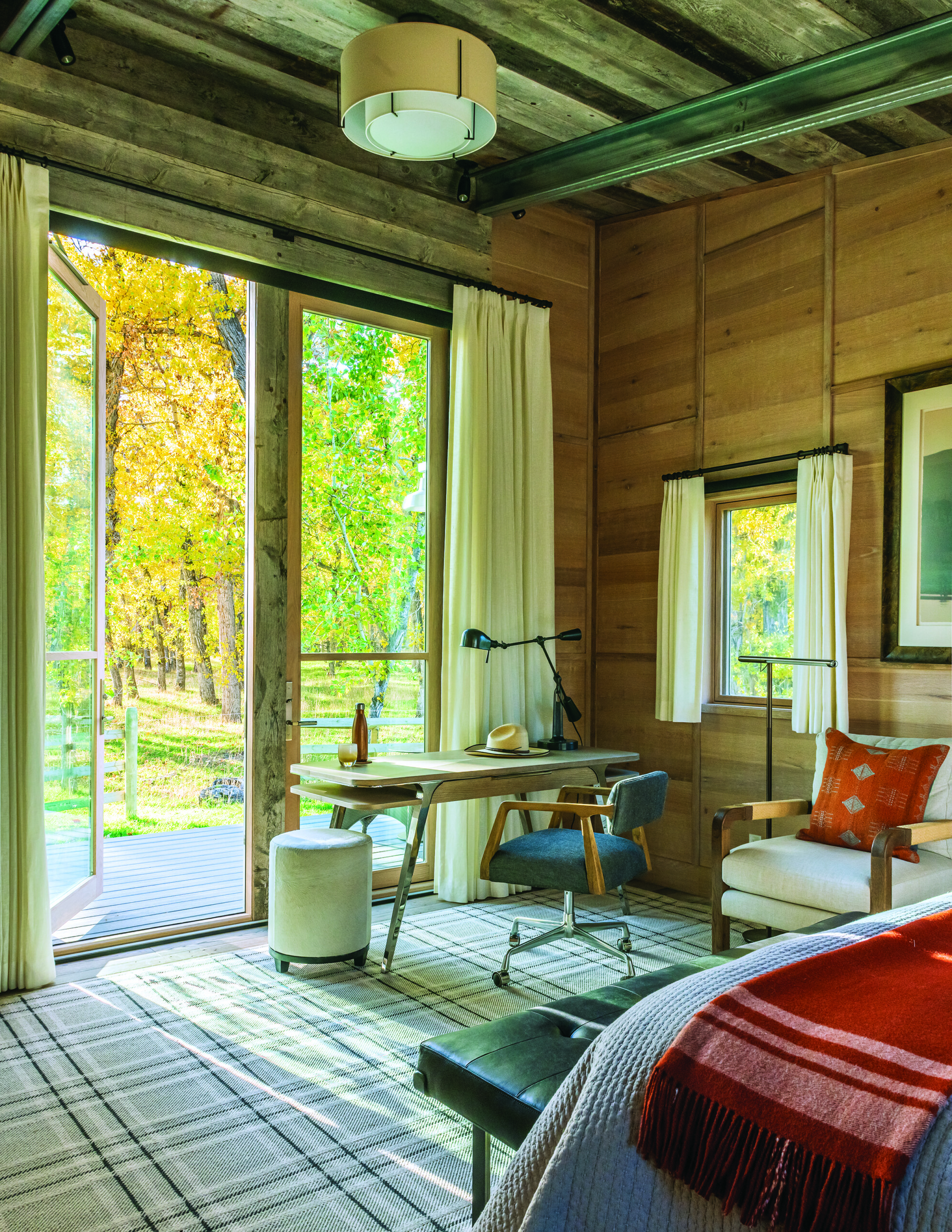 Her work takes her to top global design centers, but her real life is in the West, where her log home is furnished with a blend of antiques, family heirlooms and, of course, Pierre Frey fabrics and rugs. “She did an incredible job of balancing a Western renovation while also honoring her French roots,” says Hall. “And I think it is remarkable that the president of an international brand like Pierre Frey can live in Montana.”