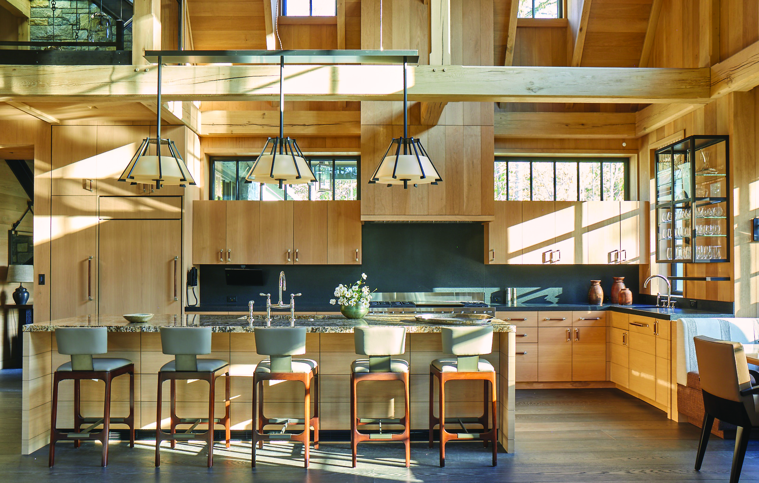 PDB: A perfect example is that we’re seeing a huge trend away from open floor plans toward more personal spaces. You’re always on top of each other with an open floor plan. You can’t go into the kitchen and do your homework because it’s open to the living room. The chapter “Mountain Magic” is a about a Vail home that originated because of (the Covid) lockdown. The clients needed a refuge and they chose Colorado, a place they had been going to for many years. They wanted something that bridged the gap between togetherness and separateness. So you flow from the kitchen to the family room or the pool table, but every area still feels distinct.
