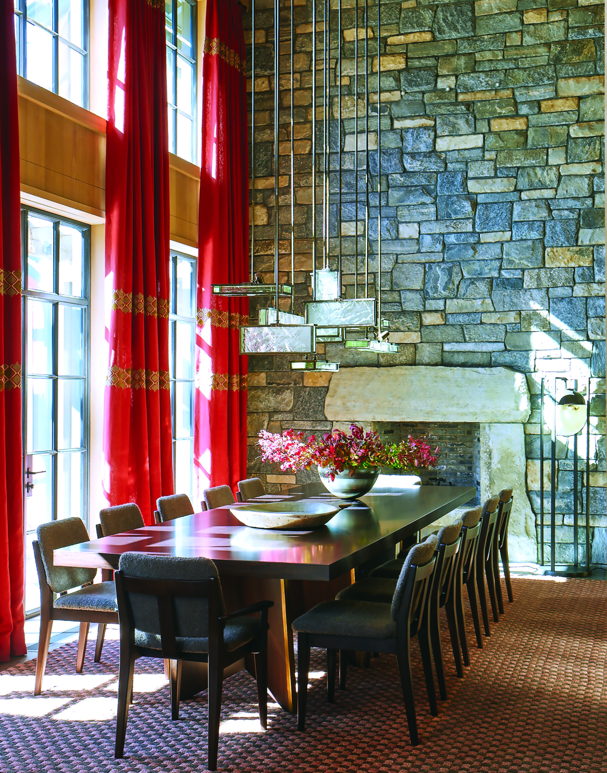 as many floor-plan arrangements as I can. In that regard it wasn’t different, but they’re all unique. In Vail, we respected the architecture of the house, which was specific to the region, with lots of wood and stone. That was the challenge: You don’t want the furnishings and the architectural materials to clash, but on the other hand the design needs to stand up to all that woodwork. The solution was texture and color. We chose refined textural fabrics with interesting color to complement the architecture.