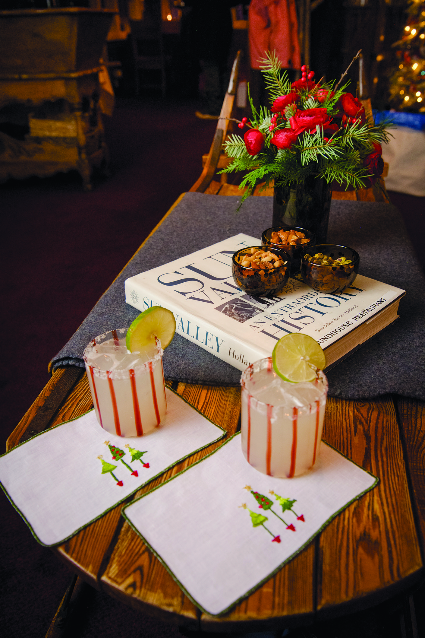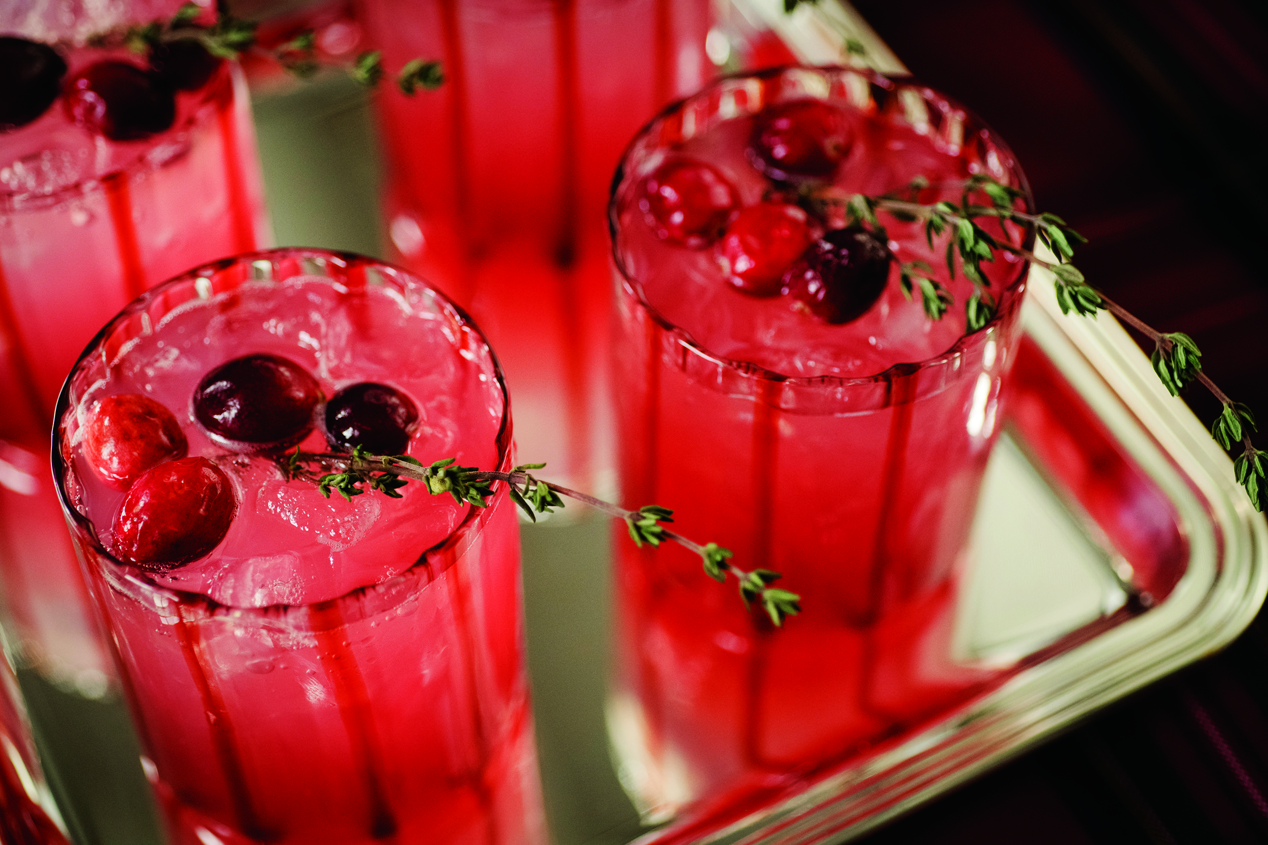 Shafran Margaritas, served every year, make merry with holiday colors, floating cranberries and sprigs of fresh thyme. | Photo: Dev Khalsa